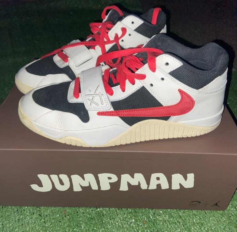 These run true to sizeThe Travis Scott Jumpmn Jack TR 'University Red' elevates Travis Scott's inaugural signature shoe with a sleek black canvas upper. contrasted by luxe off-white tumbled leather overlays and a coordinating midfoot strap. Emblazoned with a vibrant red J logo on the tongue. the design features a distinctive backward red suede check on the lateral side. while the iconic Cactus Jack face logo makes its mark on the back heel. Underfoot. the cream-hued rubber outsole proudly displays 'Jack' in oversized red lettering. delivering both style and substance to this standout silhouette.