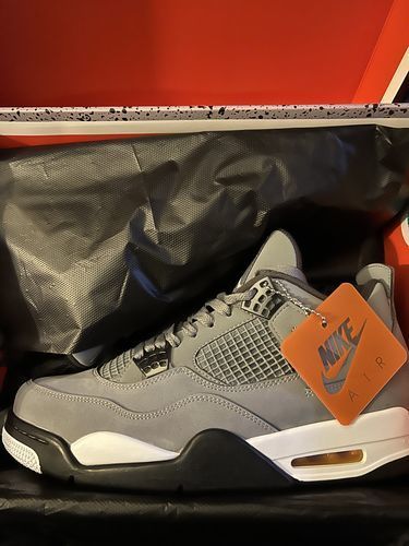 These fit true to size.Re-released in August 2019. the AJ4 Retro 'Cool Grey' celebrates the iconic sneaker's 30th anniversary in a true-to-form retro of a 2004 colourway. The Cool Grey nubuck upper is framed with a white midsole that houses a visible N1ke A unit. while black details line the outsole and lace loops. A hint of varsity maize appears on the tongue patch. A bubble and outsole. while a chrome J adorns the back heel.