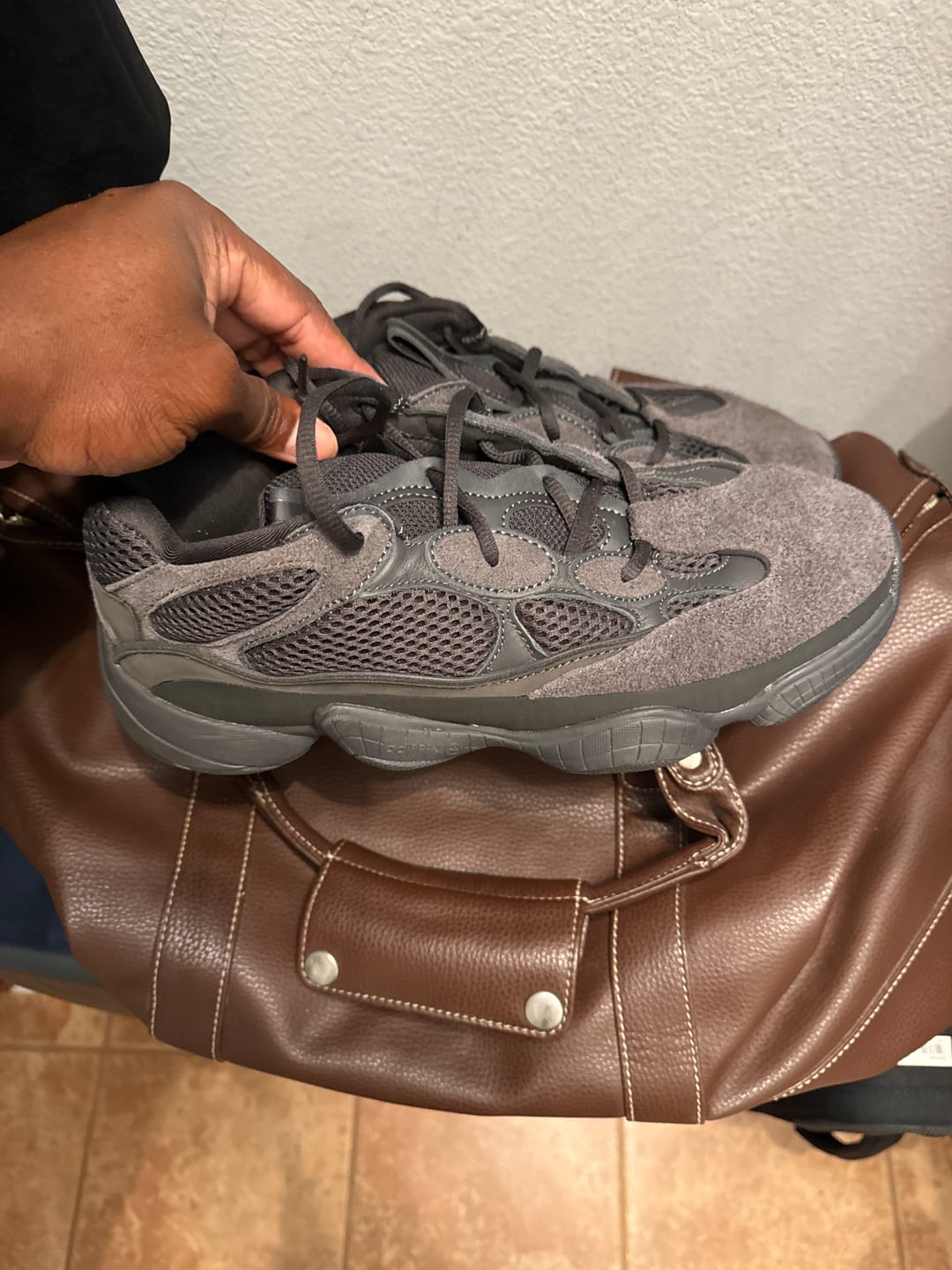 For any questions regarding the creation of our items. please contact us via WhatsApp(+85254426878).Kanye is back. this time with a brand new colorway of the Yeezy 500. Keeping it monochromatic. this pair is covered entirely in one color: utility black. Like other Yeezy 500s. this pair features a suede upper with mesh paneling. In addition. the midsole utilizes Adiprene cushioning technology.
